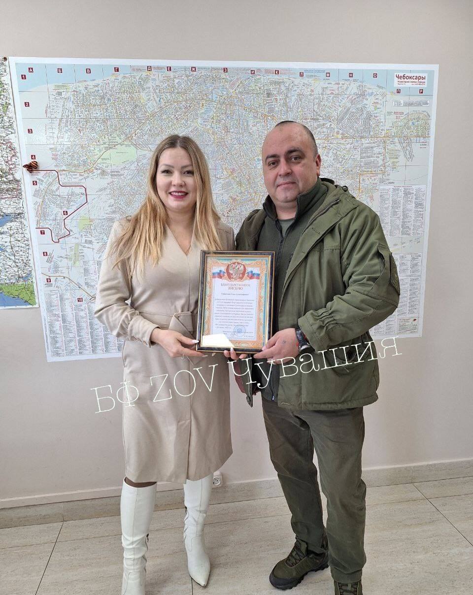 Заместитель командира батальона связи В. Кузнецов вручил благодарность от добровольцев Чувашского национального батальона "АТАЛ" за активную поддержку и оказанную гуманитарную помощь! Очень радует,…