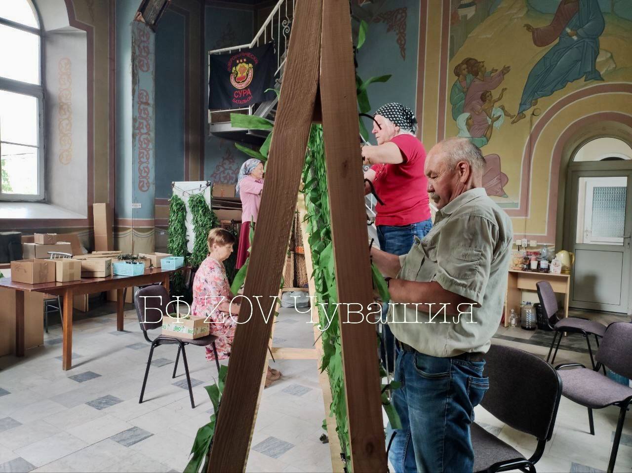 Это поздравление от участниц центра плетения маскировки в Покровско-Татианинском соборе города Чебоксары: «Поздравляем православных тружеников и бойцов со Святой Троицей ??? Троица единосущная и…